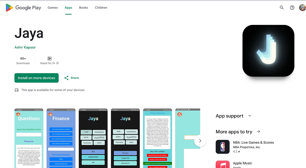 Founded and Developed an app for migrant workers in Singapore (Google Play Store). Teaches them financial literacy, legal rights, and has an AI chatbot trained to answer specific questions from workers and a translation feature. Raised awareness about the app and did workshops in the SG NGO ItsRainingRaincoats, local Gurudwaras, and migrant agencies in India.